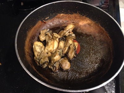 3.オイスターソースを入れ、水分を飛ばすまで煮ます