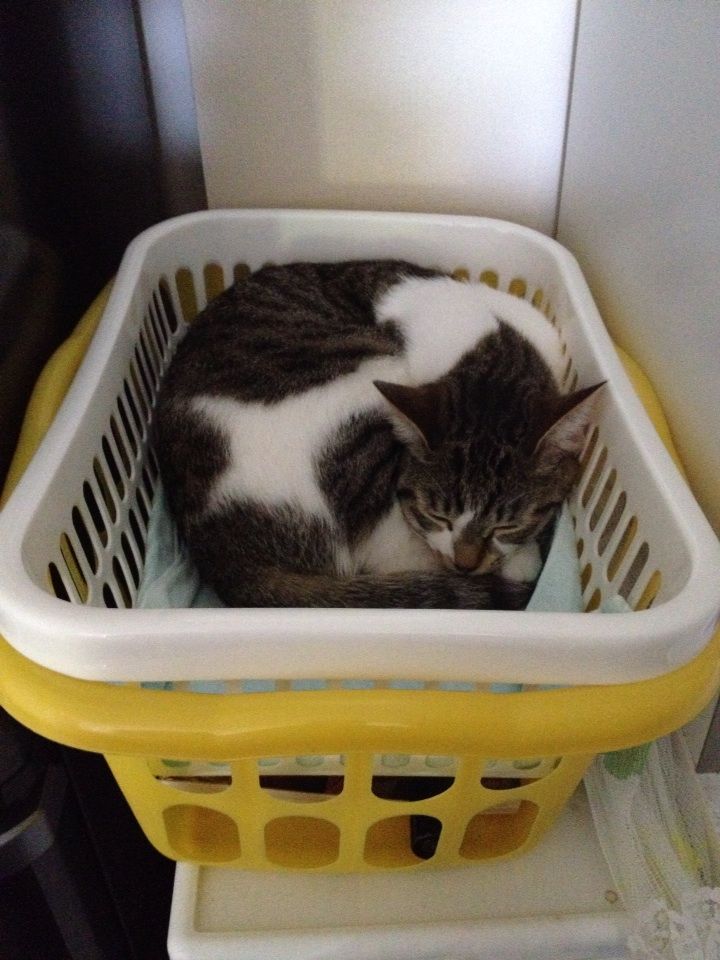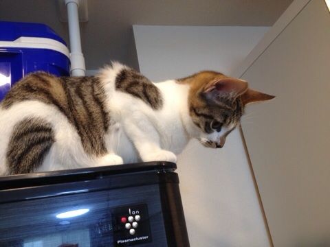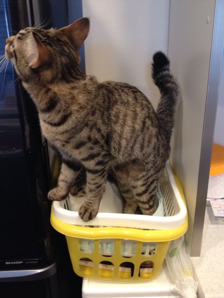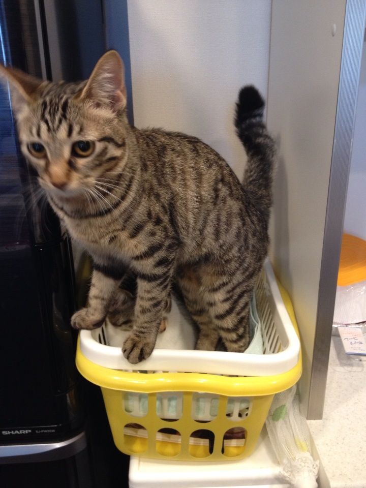 フランはその上のカゴがお気に入りのようです。