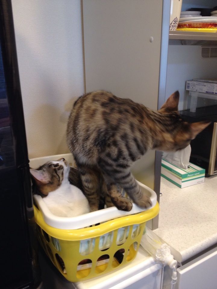 マロンもカゴが好きなようで、フランの邪魔をしにやってきました。