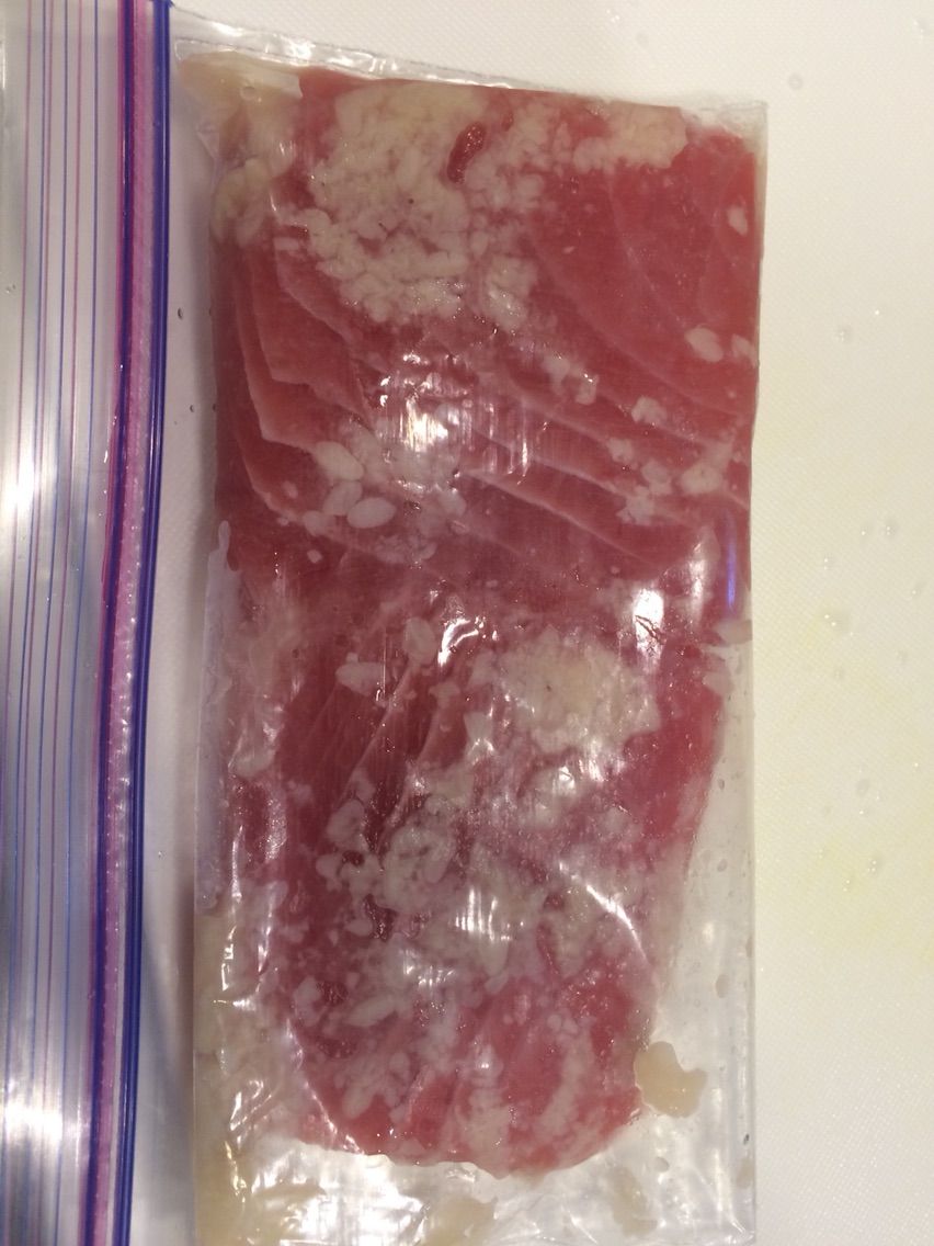 嫁さんがどこからか「塩漬けマグロが美味い」という情報を手に入れたので、早速作ってみました!