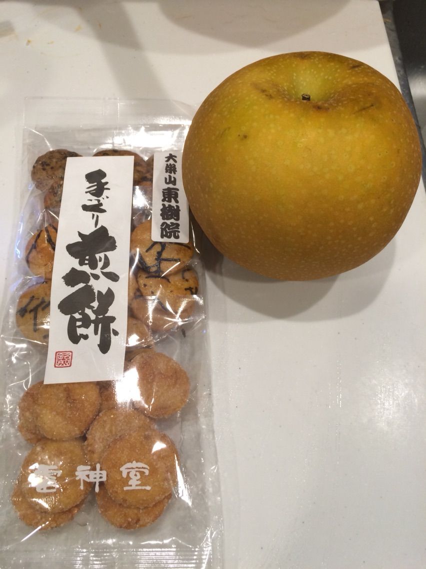 しかもお土産にと大きな梨とお煎餅まで