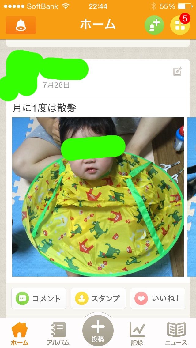 例えば、下の写真のように、簡単なコメントをつけて、子どもの写真や動画をアップすることができます。