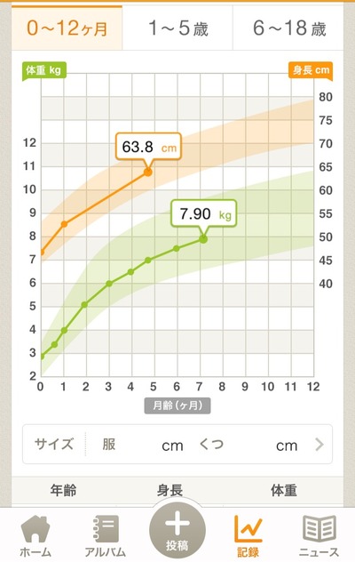 子どもの身長、体重が簡単に入力できます。共有できるのも嬉しいですが、純粋に記録として残せるのも嬉しいですね。